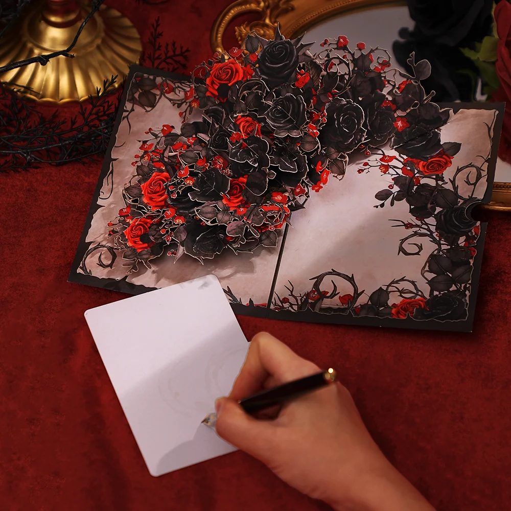 | Product Name | Black Rose Beautiful Florid Card With Envelope Red Rose Blossom Greeting Card Gothic Style Halloween Card Friendship Presents |