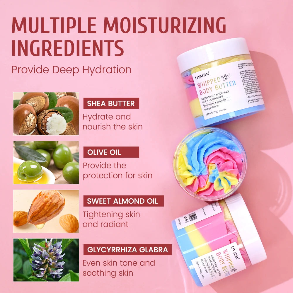 190g Rainbow Whipped Body Butter Skin Brighten Nourishing Hydrating Vegan Shea Butter Olive Oil Moisturizing Smooth Skin Dryness