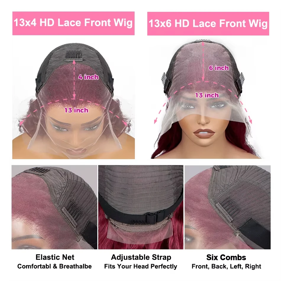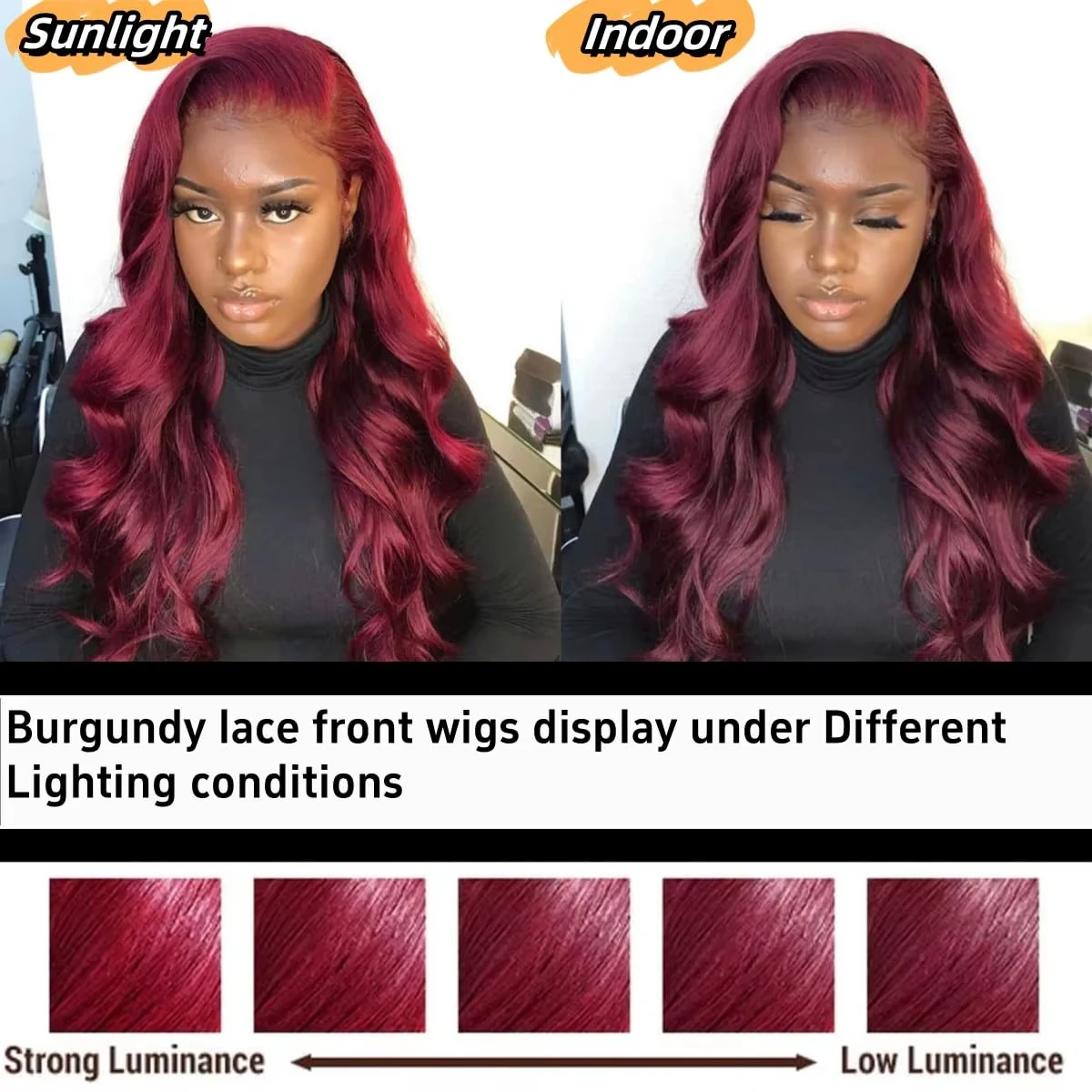 40" Burgundy 13x6 HD Lace Frontal Human Hair Wig – 99J Body Wave, Ultra Full & Glamorous