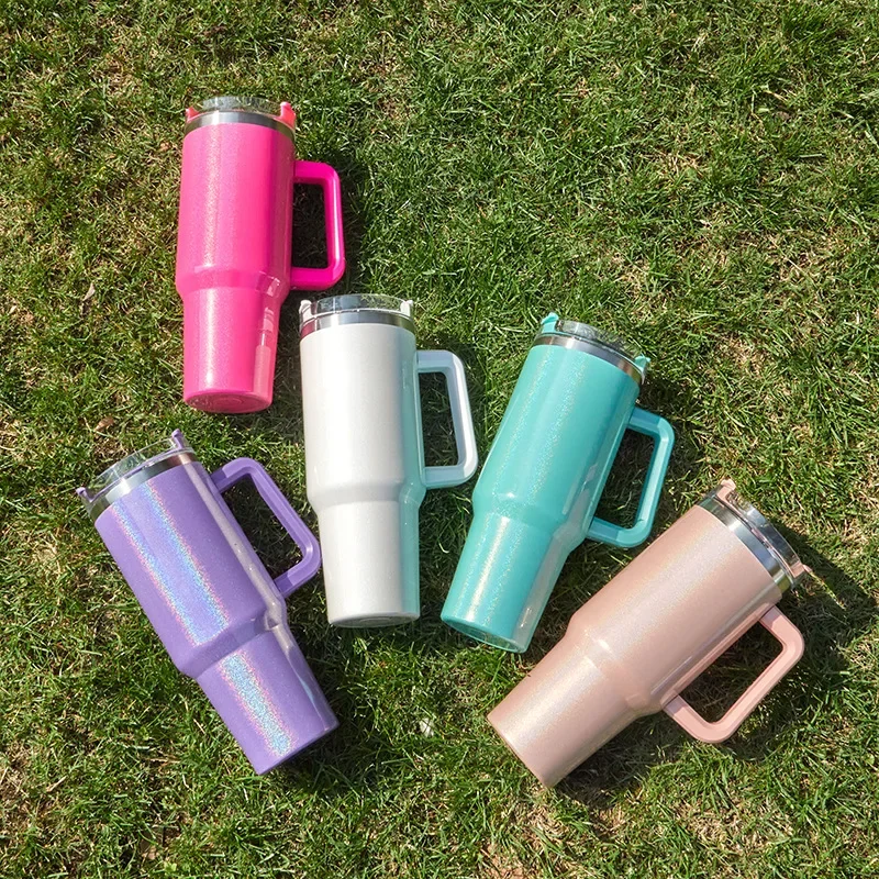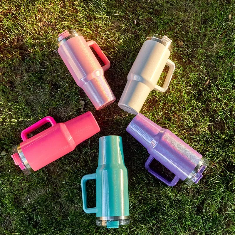 40oz Glitter Shimmer Holographic Rainbow Tumbler Insulated Mug with Handle for Car - Blank Sublimation Rainbow Cup