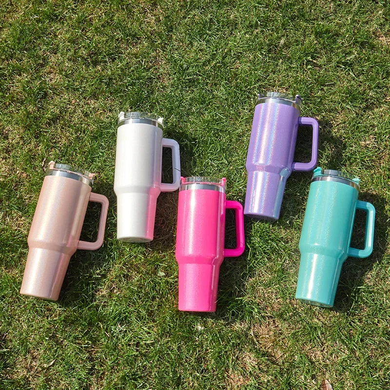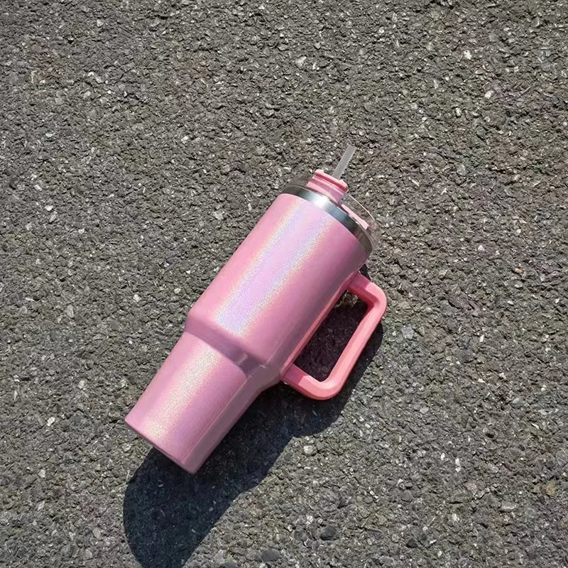 40oz Glitter Shimmer Holographic Rainbow Tumbler – Insulated Mug with Handle for Car (Blank Sublimation Cup)