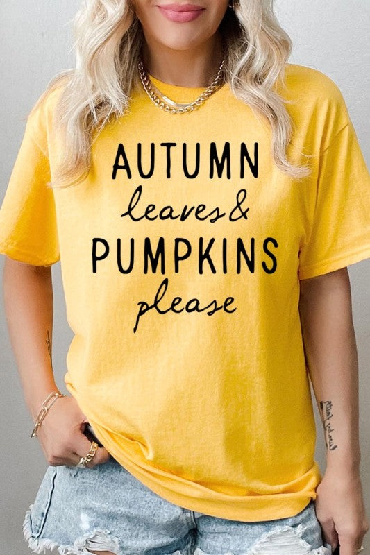 Autumn Leaves Pumpkins Graphic Heavy Cotton Tee