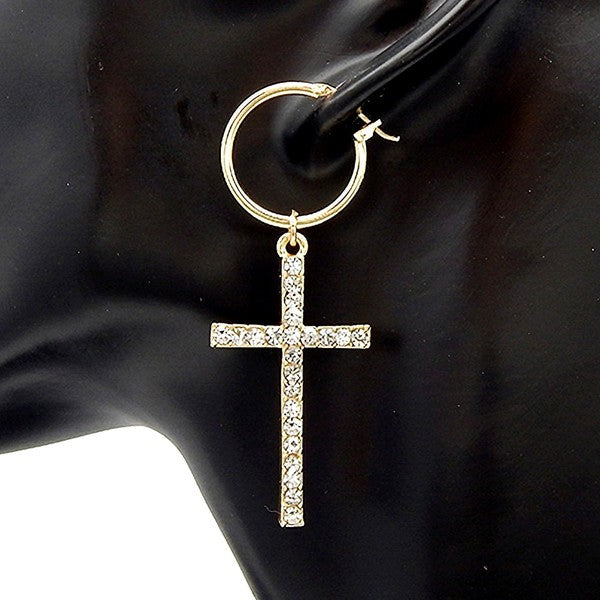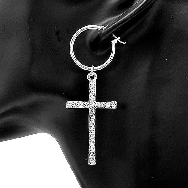 - Adorned with shimmering rhinestones, these Baby Hoop Dangle Rhinestone Cross Earrings add a touch of elegance to any ensemble.