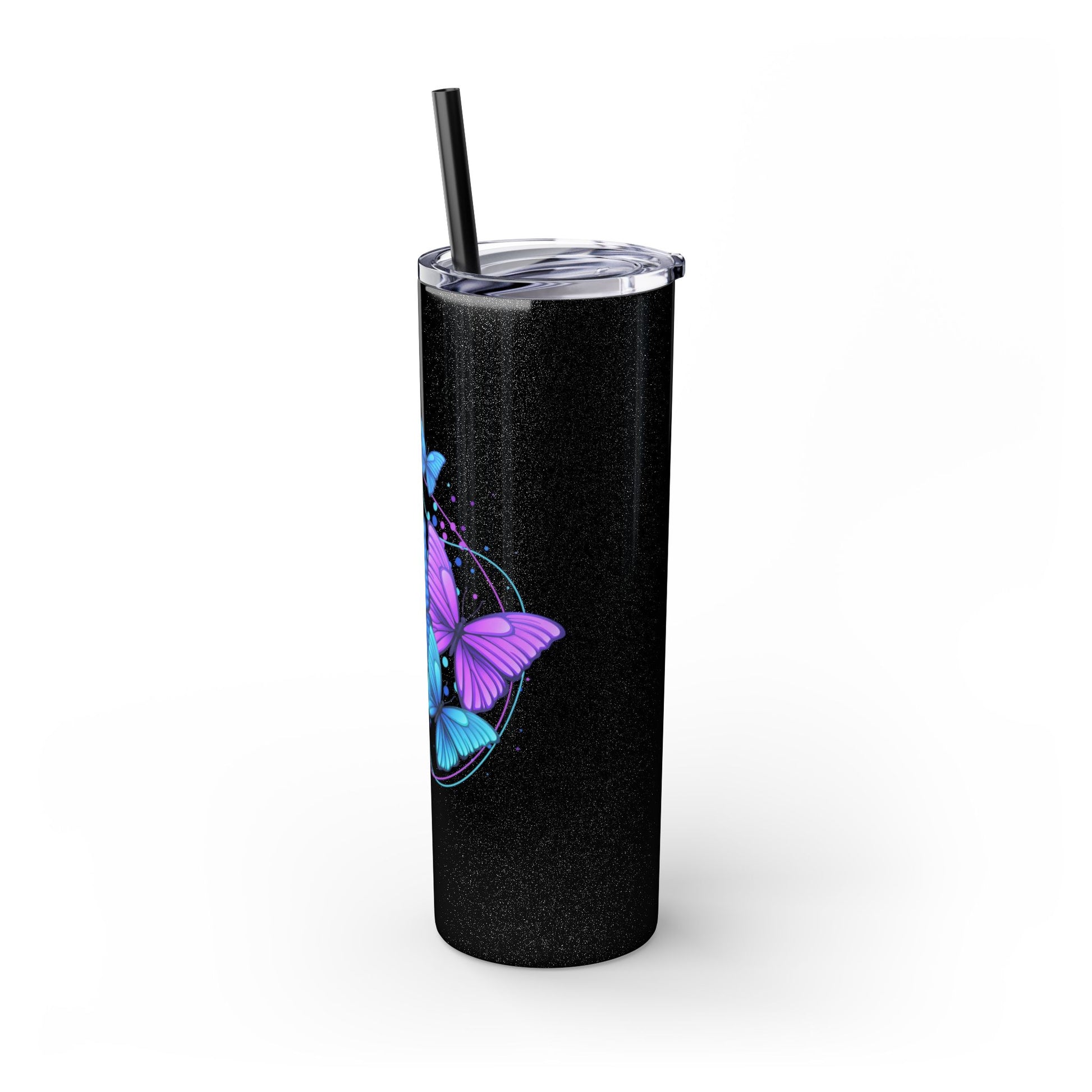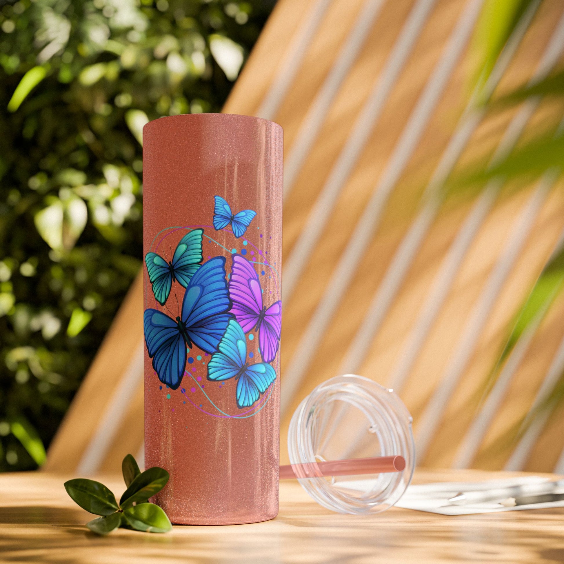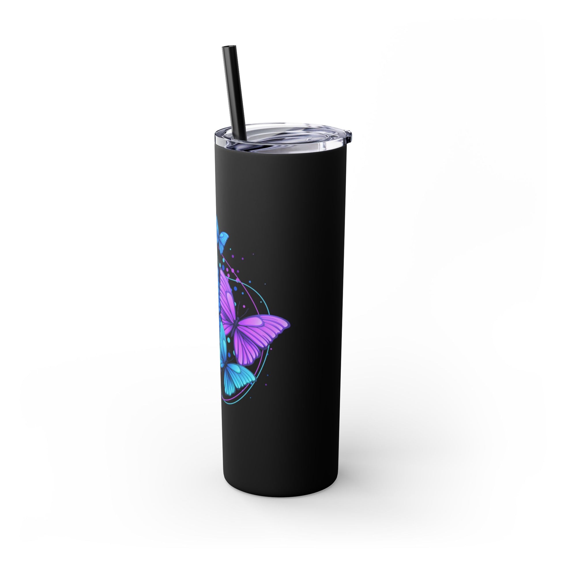 Butterfly Design Skinny Tumbler with Straw - 20oz Travel Mug
