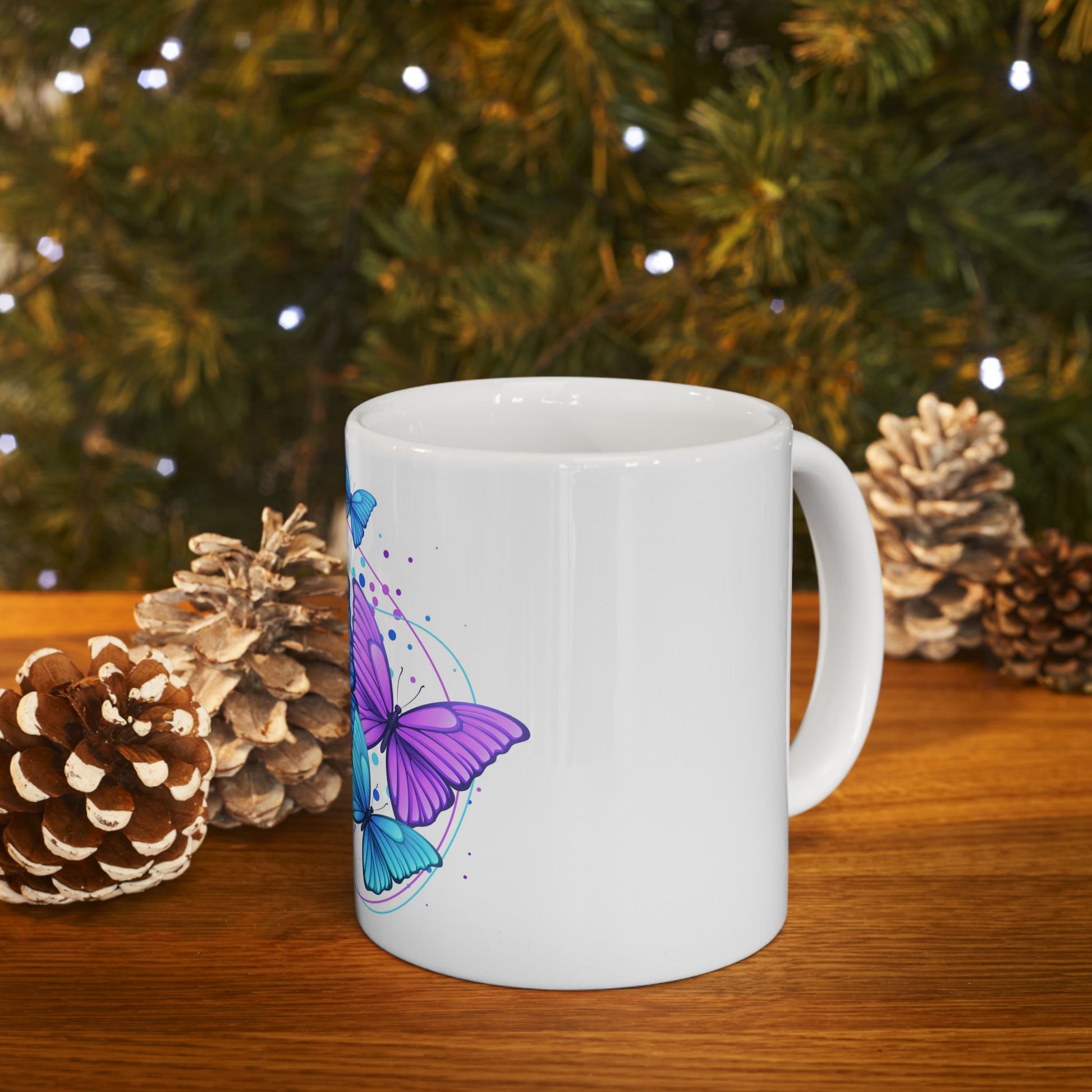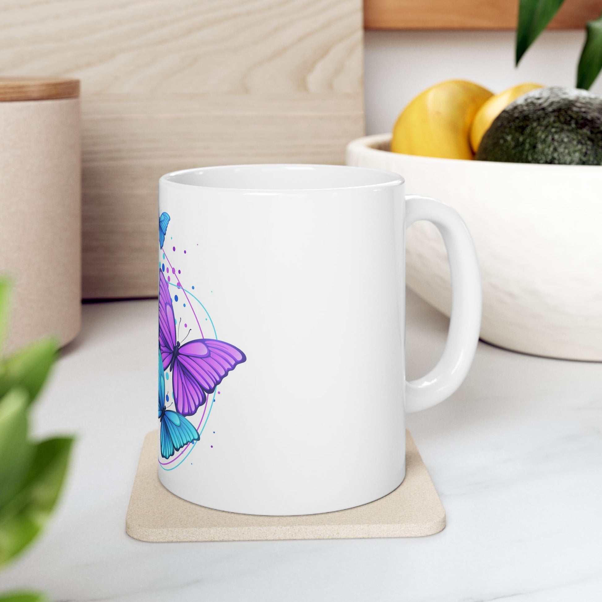 Butterfly Dreams Ceramic Mug, Colorful Butterfly Mug, Blue and Purple Mug, Nature Lover Gift, Spring Decor, Eco-Friendly Coffee Cup