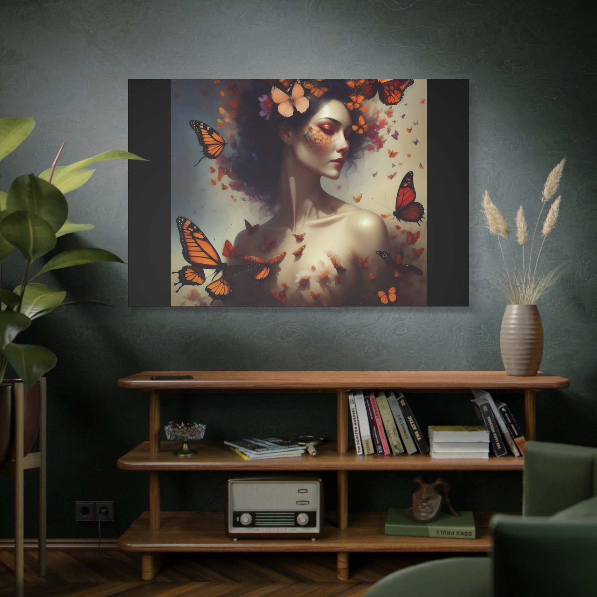 Transform your space with this stunning Stretched Canvas. Featuring a breathtaking artwork of a woman surrounded by vibrant butterflies, this canvas adds a touch of elegance and whimsy to any room. The rich colors and fine details capture the imagination, creating an enchanting atmosphere that invites relaxation and inspiration. Perfect for art lovers, nature enthusiasts, or anyone looking to elevate their home decor, this canvas is ideal for living rooms, bedrooms, or creative spaces. Whether it’s a birthday, housewarming celebration, or a special holiday, it makes a thoughtful gift that will be treasured for years to come.