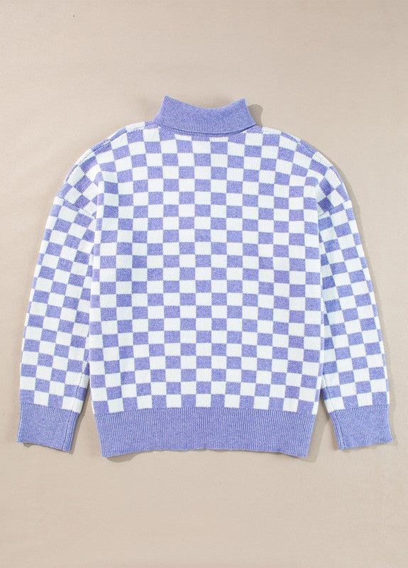 This cozy pullover is so soft, features a colored checkered design, long enough to tuck.