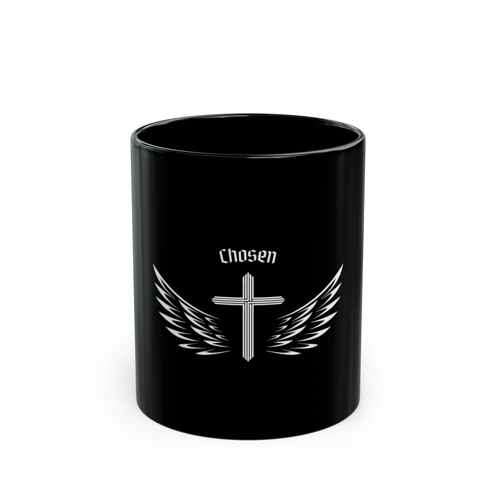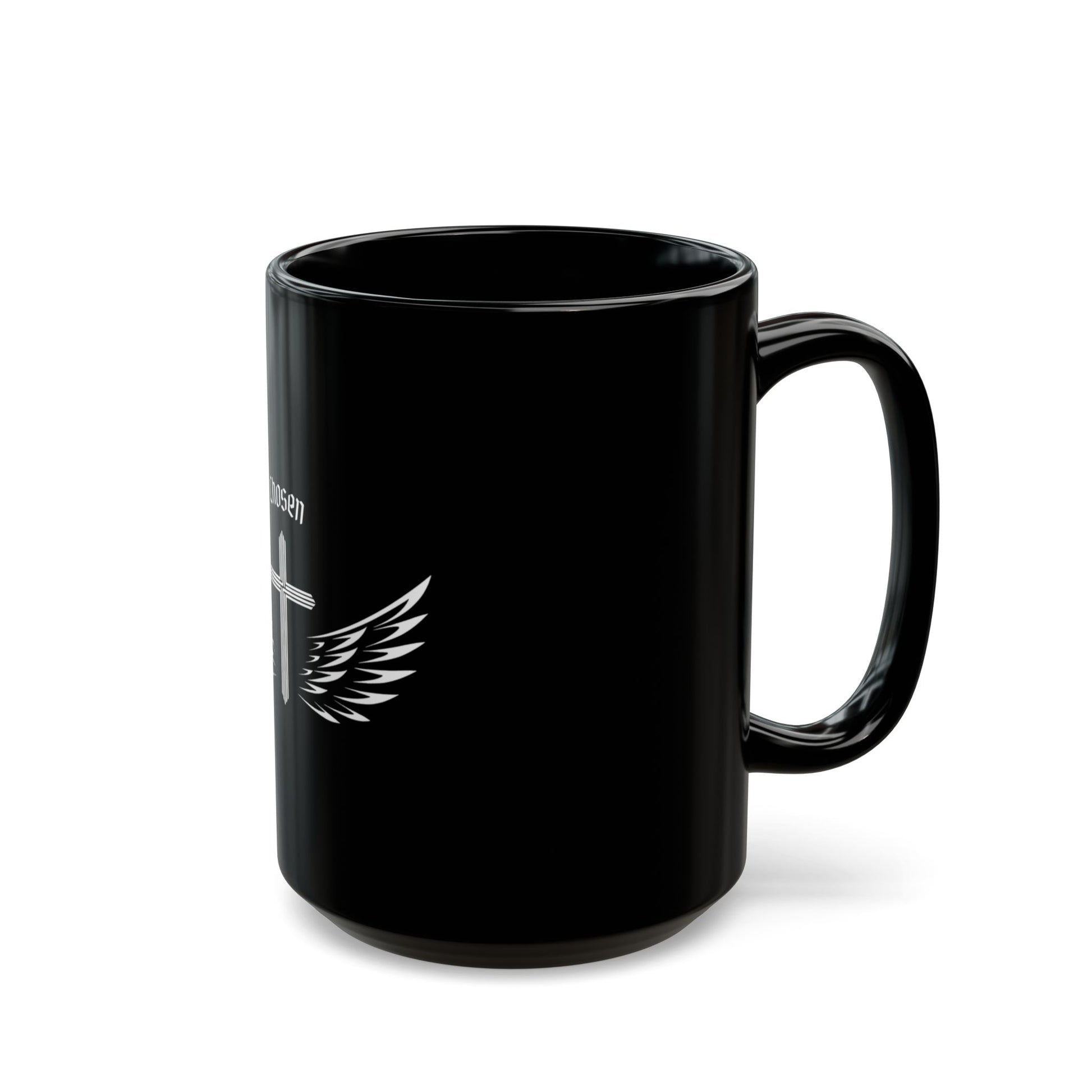 "Chosen" Inspirational Black Mug with Wings | Perfect Gift for Faith Lovers, Motivational Coffee Cup, Religious Home Decor, Christian Mug