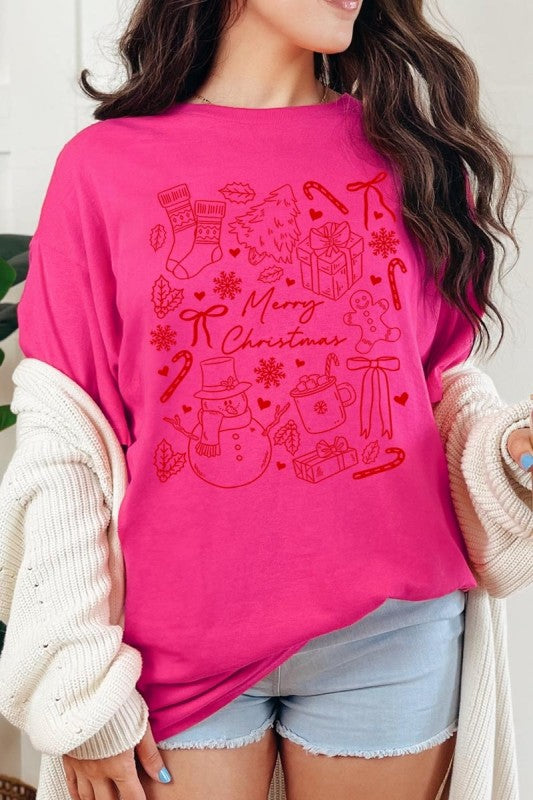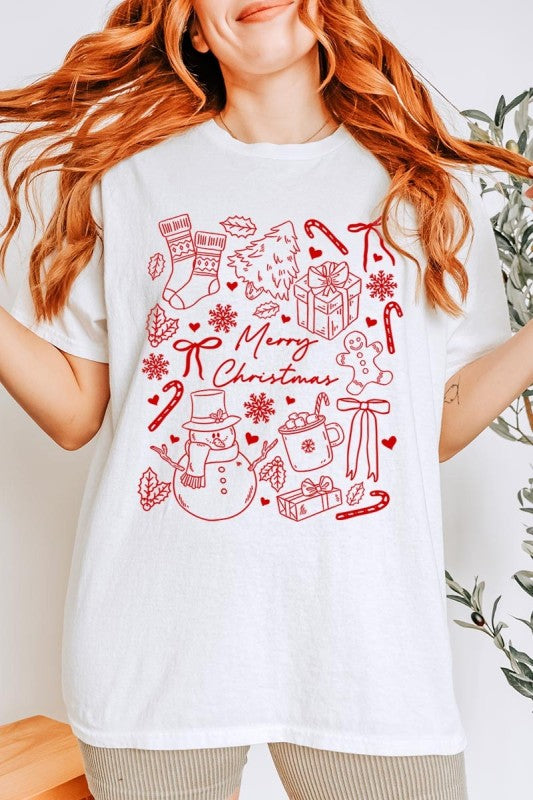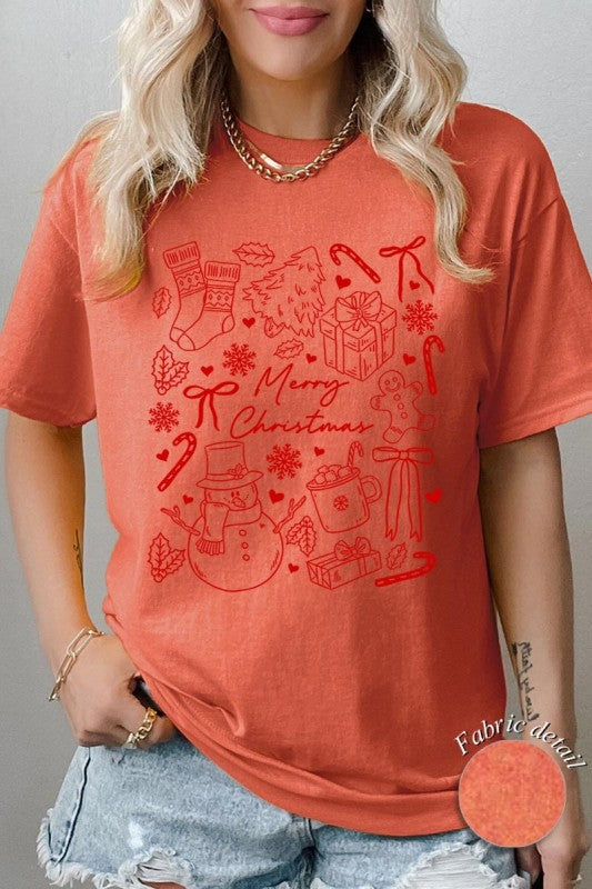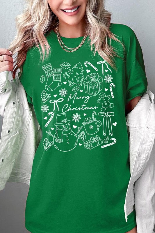 merry christmas shirt, holiday doodle tee, festive christmas top, cute christmas graphic tee, gingerbread shirt, holiday season shirt, christmas stocking tee, cozy holiday Graphic Heavy Cotton Tee.