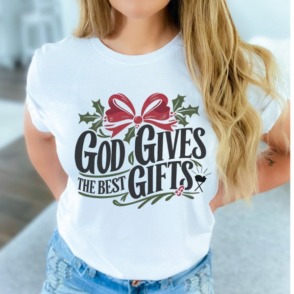 Christmas graphic t-shirt, Christian top, Red Bow