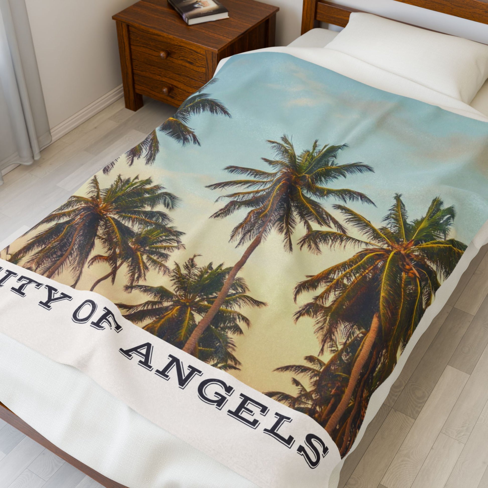 Cozy City of Angels Velveteen Plush Blanket, Soft Throw for Home, Beach Blanket, Travel Companion, Gift for Friends
