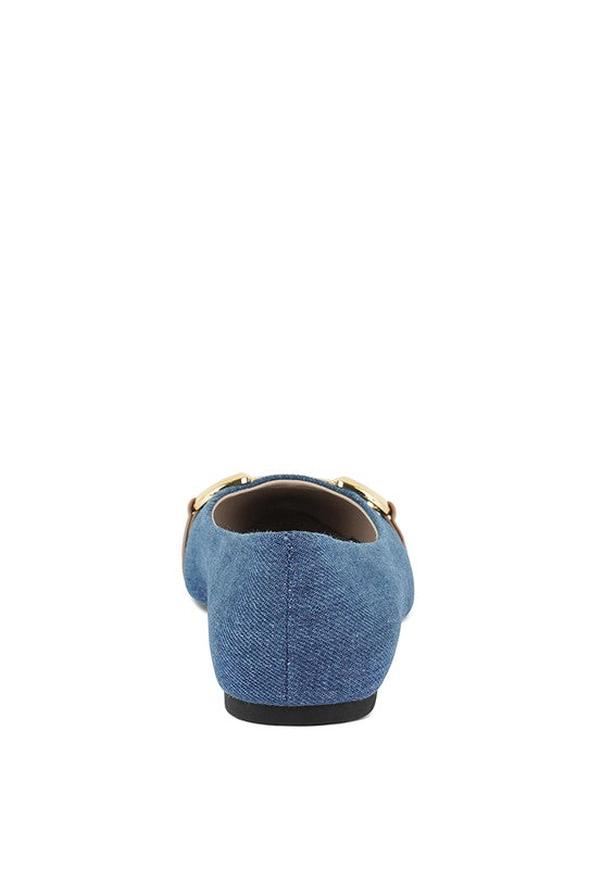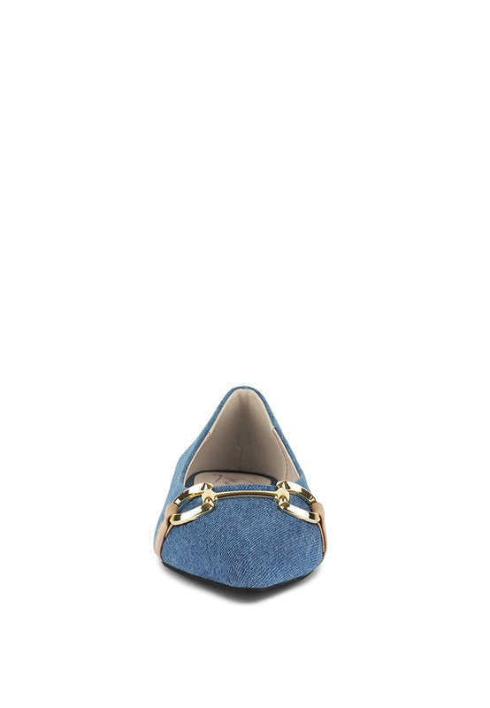Cressida Denim Horsebit Detail Ballet Flats