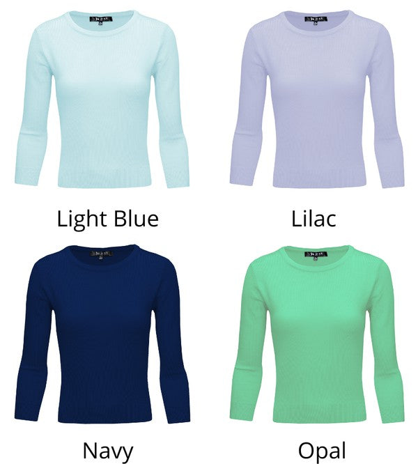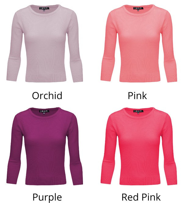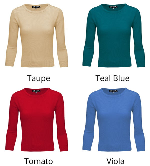 - 3/4 Sleeves, Colorful, Basic, Casual, Simple, Well-Fitted Silhouette, Knit Pullover Sweatshirt Top Sweaters for Woman.