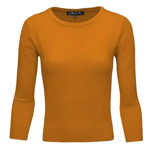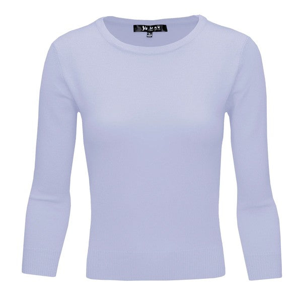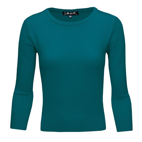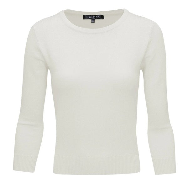 Crewneck 3/4 Sleeve Spandex Pullover Sweater Shirt