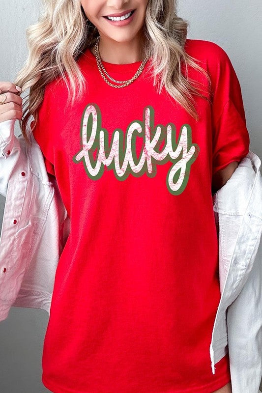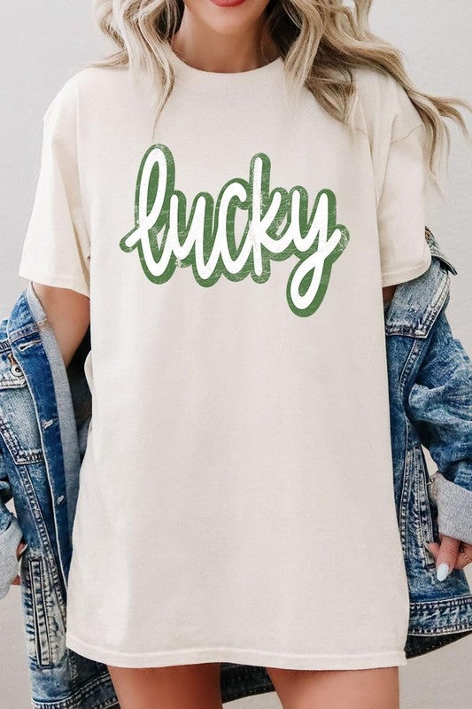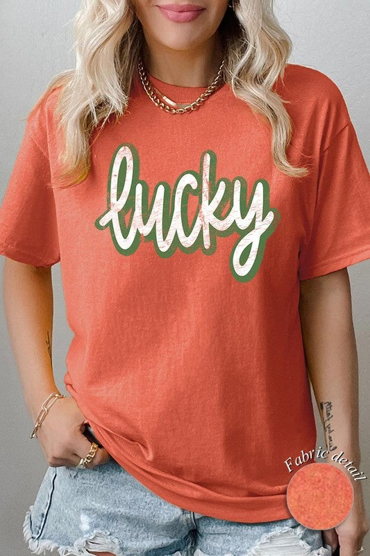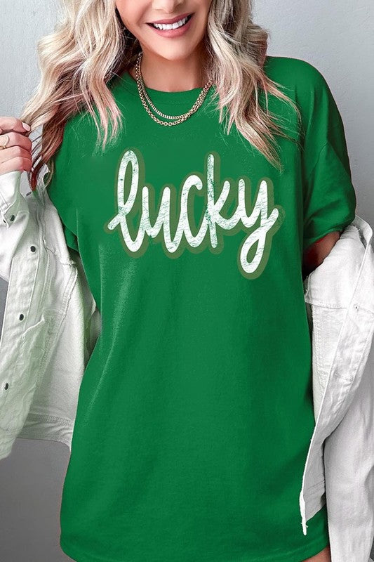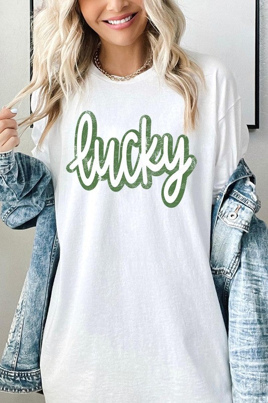 Distressed Lucky Graphic Plus Heavy Cotton Tee. **PLUS SIZE**
