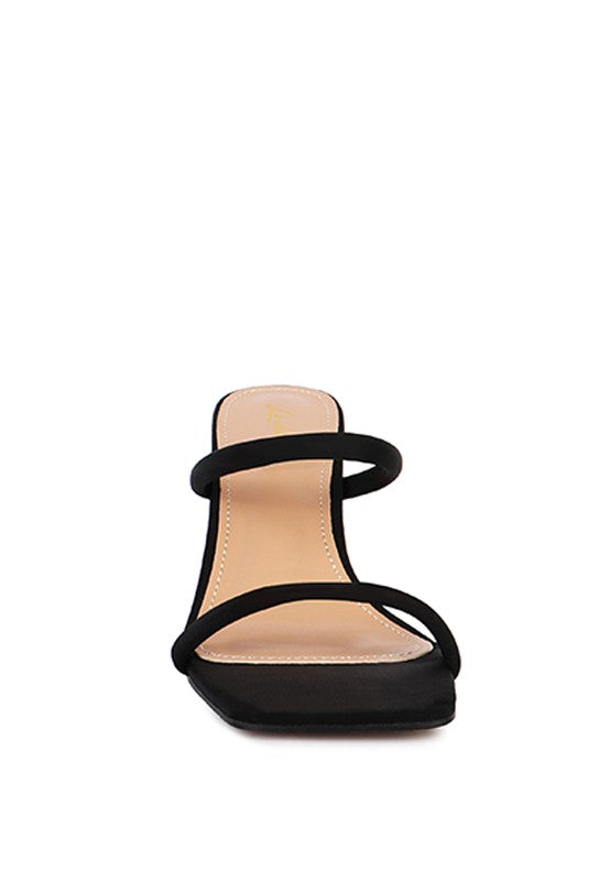 Treat to the eyes and trick to the eyes - this experiment heel sandals have stability and elements of interest. The mid-heel slider sandal is great for an all-day stylish casual look.