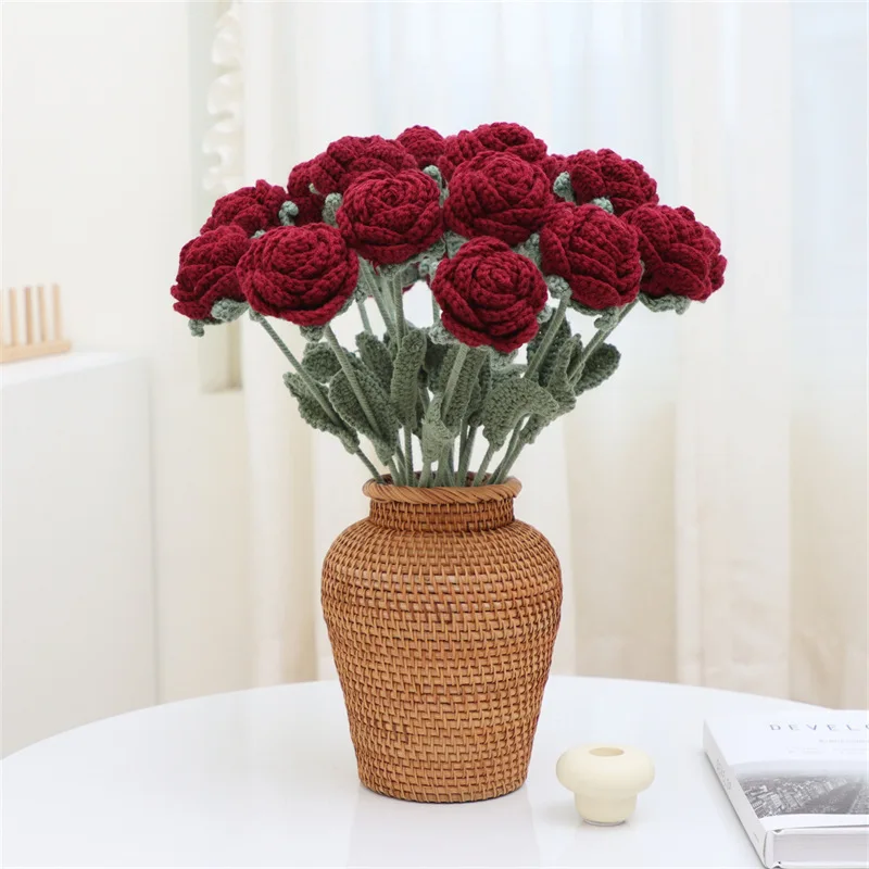 Handmade Crochet Roses, Modern Elegance Flower Home Knitted Rose Decoration
