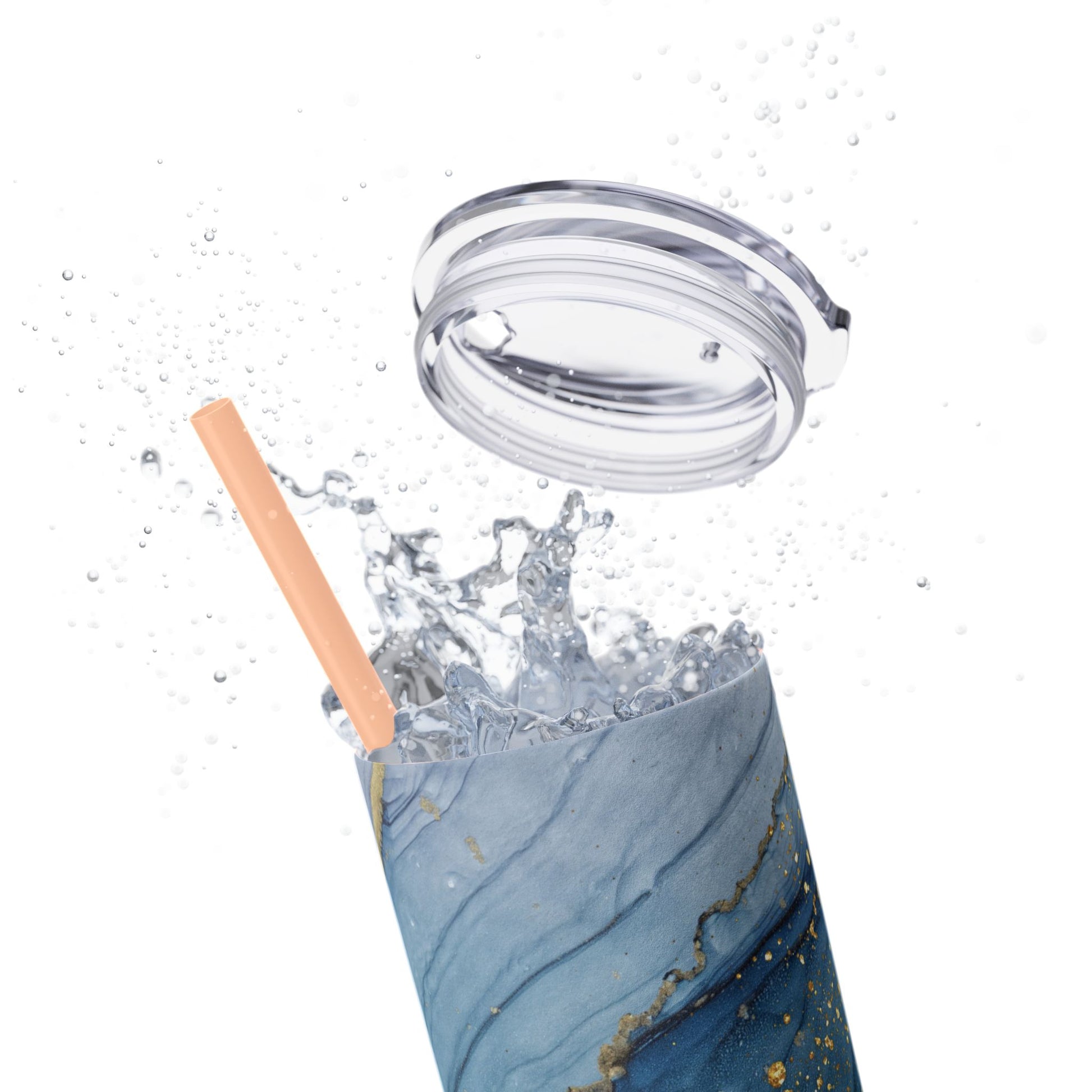 Elegant Blue Marble Skinny Tumbler, 20oz - Stylish Drinkware for Daily Use, Gifts, Celebrations, Eco-Friendly, Travel Mug