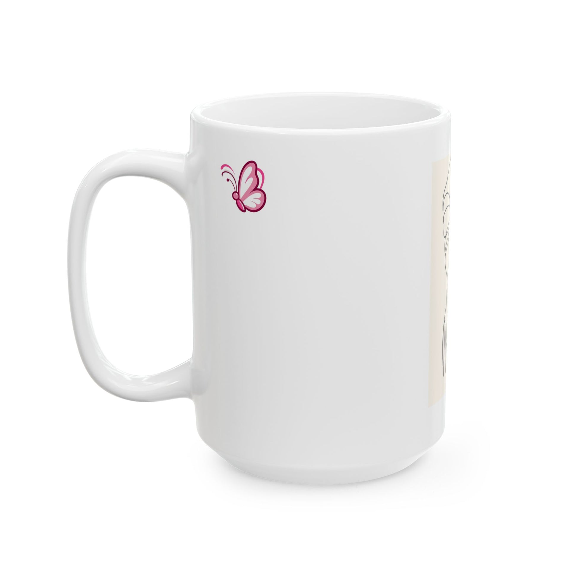 Elegant Butterfly Woman Line Art Ceramic Mug with Butterfly Accents, Perfect Gift for Coffee Lovers, Home Decor, Mother's Day, Self-Care