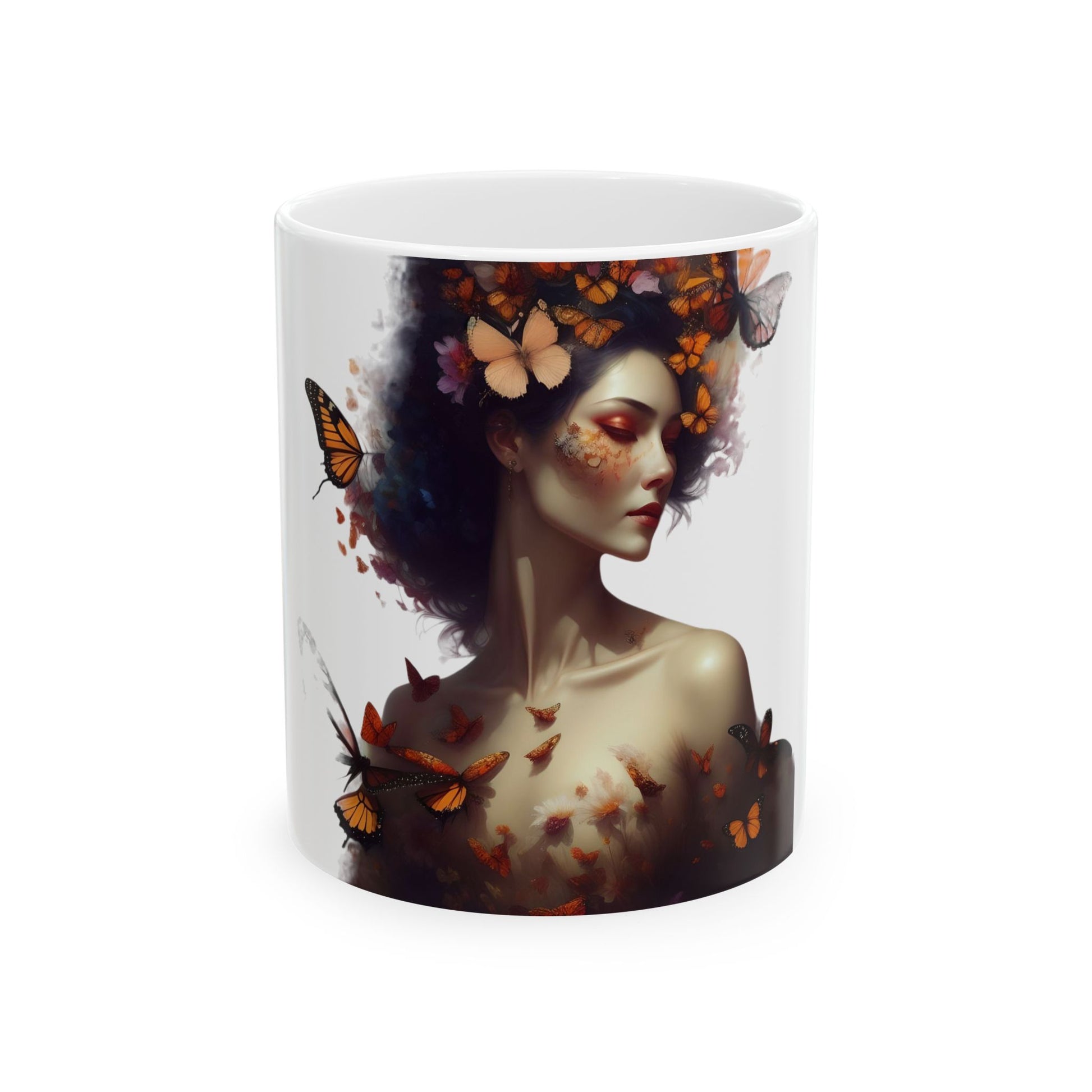 Enchanting Butterfly Woman Ceramic Mug - Artistic Coffee Cup, Tea Mug, Unique Gift for Art Lovers, Nature Lovers, Birthday, Home Decor