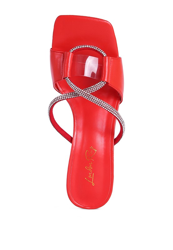 FINEAPPLE CRYSTAL LOOP MID HEEL SANDALS
