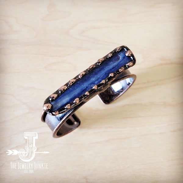 Expertly crafted in genuine natural Kyanite, this cuff bracelet features a boho western style that is perfect for stacking. With its unique design and high-quality materials, this bracelet adds a touch of effortless style to any outfit. Elevate your look with this must-have accessory