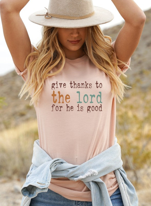 Give Thanks to the Lord For He is Good Graphic Tee Top
