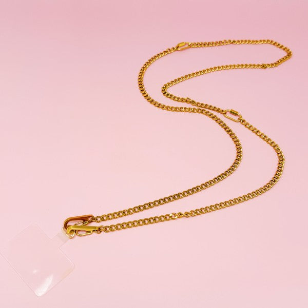 Introducing the Golden Chain Multi Function Phone Lanyard, the perfect blend of style and functionality. With its modern and chic chain design, this lanyard elevates any outfit while providing convenience with its multi-functionality.
