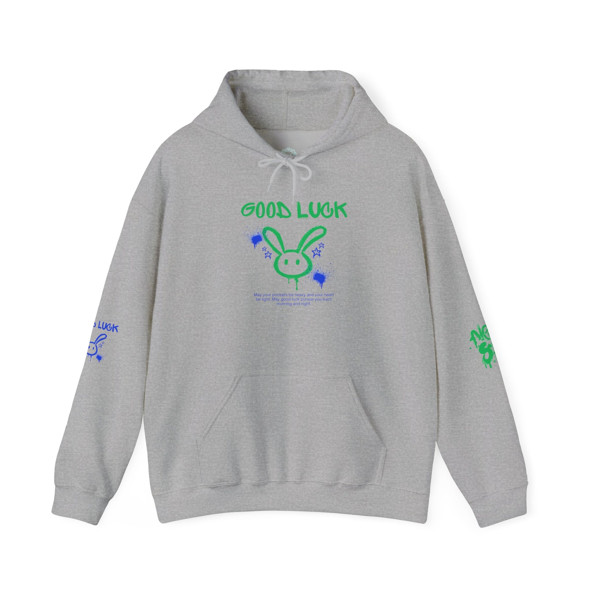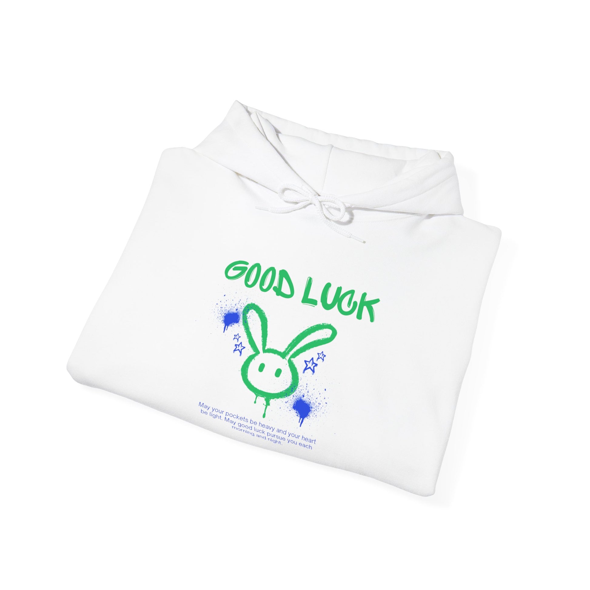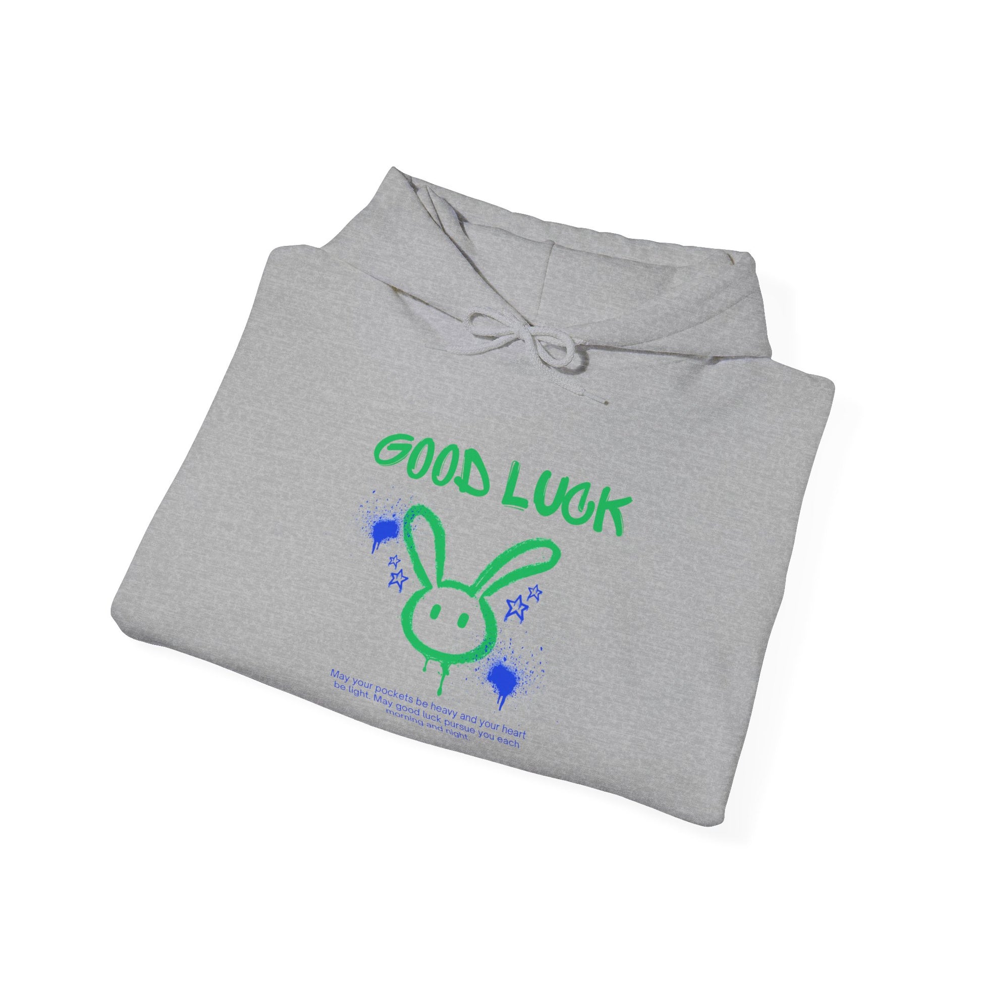 Good Luck Never Stop Unisex Heavy Blend Hooded Sweatshirt | Lucky Easter Bunny Design