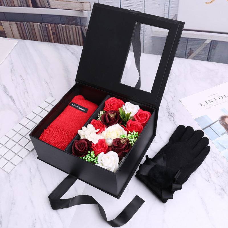 Handmade Creative Soap Flower Scarf Gloves Gift Box