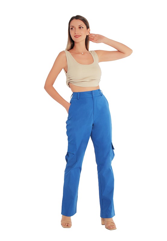 High waist pants, with 2 front pockets and back pockets are in vogue casuals. The pants are trousers are convenient as well as fashionable with the trendy flared design.