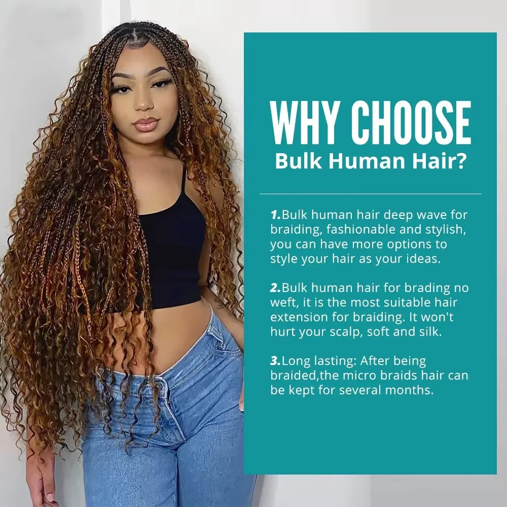 Highlight 613 Curly Boho Braids – 100% Human Hair Deep Wave Bulk for Effortless Boho Styles