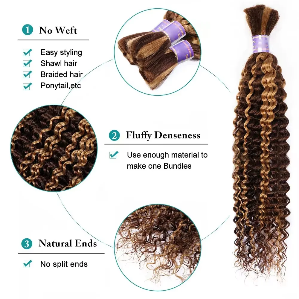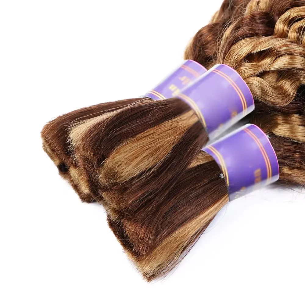Highlight 613 Curly Boho Braids Human Hair Bulk Braiding Hair Burgundy 99J Blonde Deep Wave 100% Human Hair Extensions Bundles