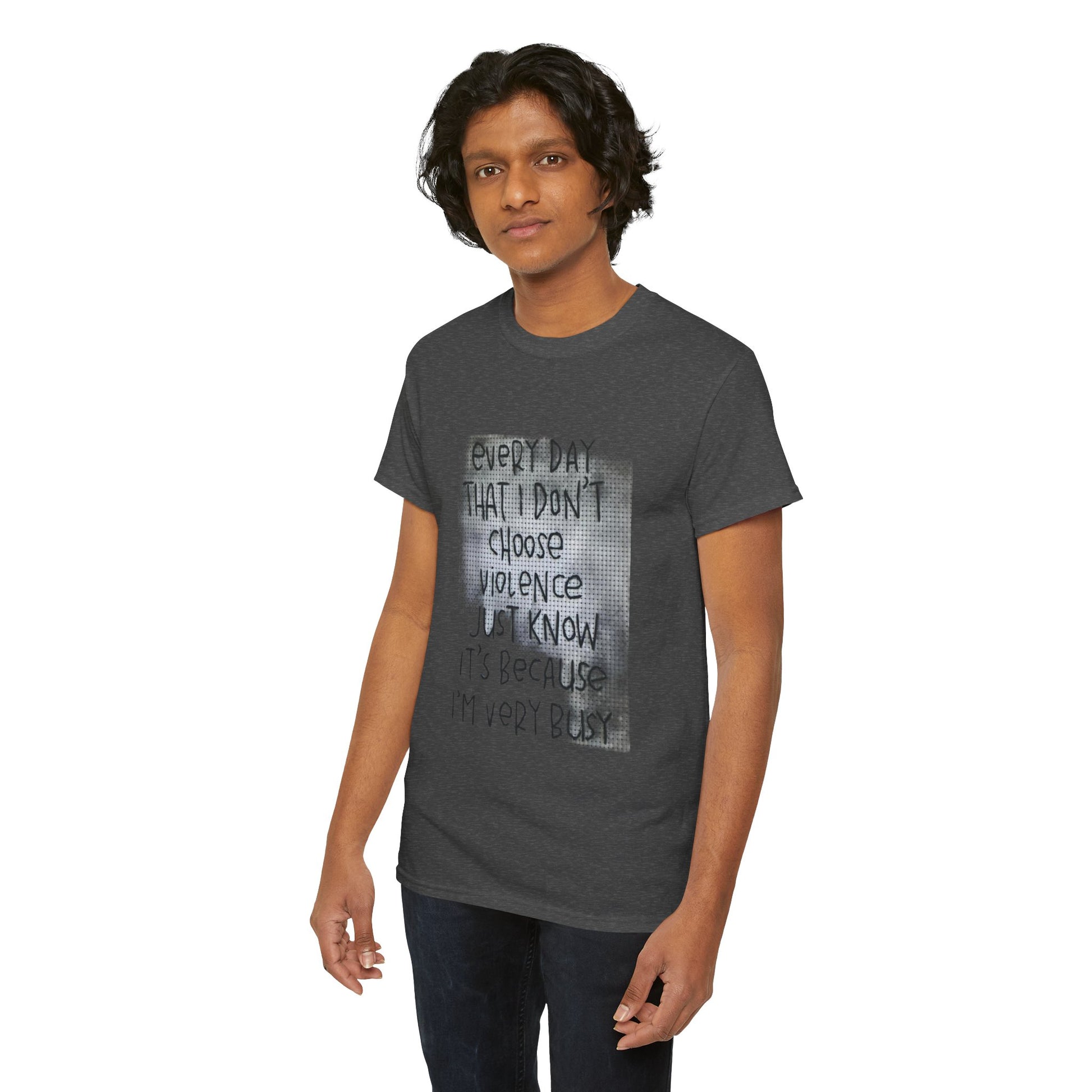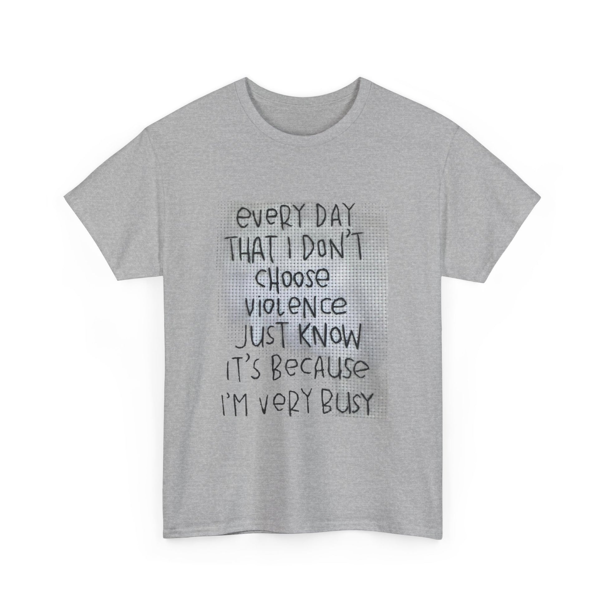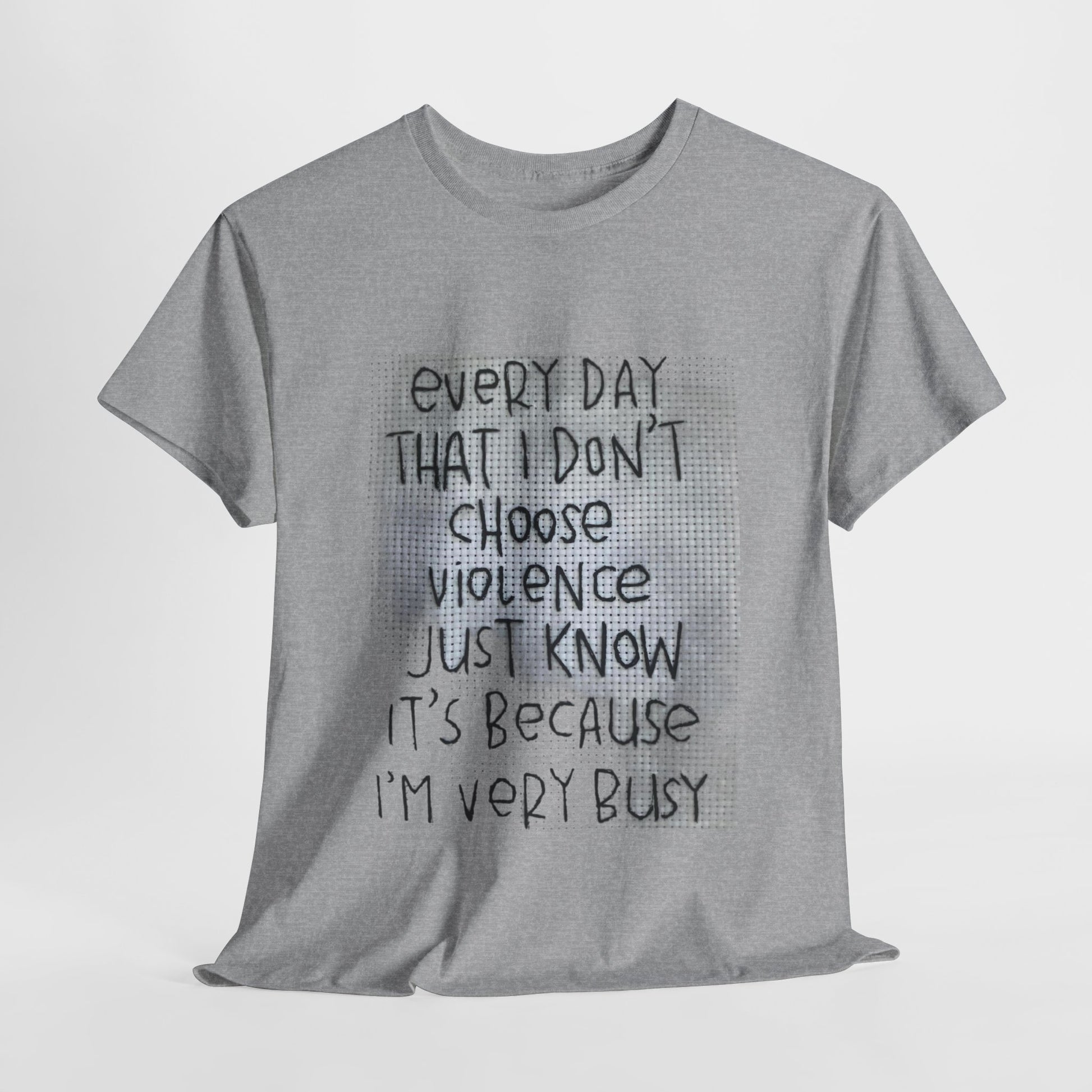 This inspirational quote unisex tee features the message 'Every Day That I Don't Choose Violence'. It is perfect for casual wear, a motivational gift for friends, and exudes a positive vibe. Ideal for adults looking for a comfortable and stylish shirt to wear on various occasions.