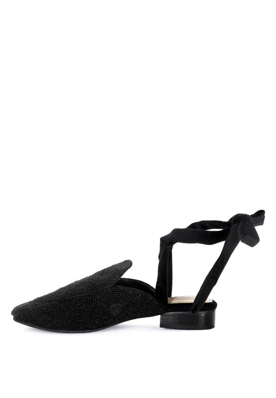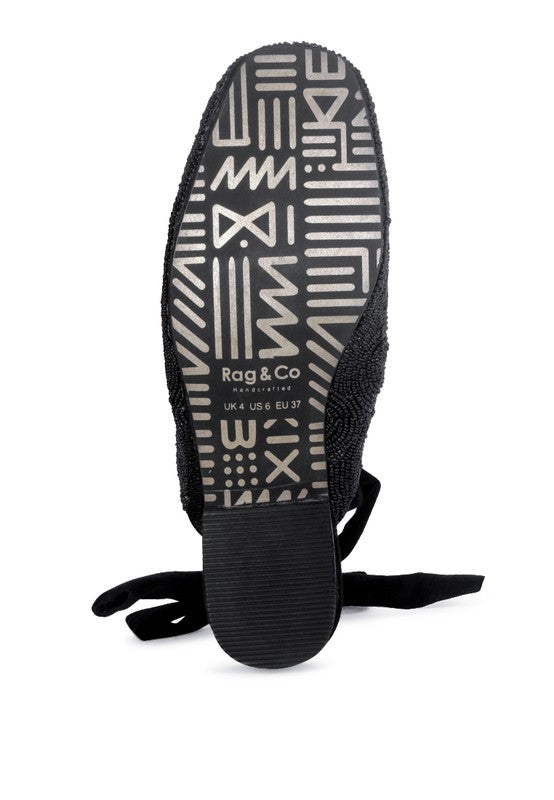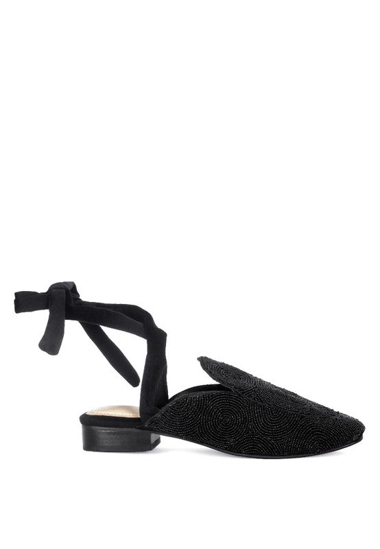 KUBA AFRICAN INTRICATE EMBROIDERY BLACK MULES