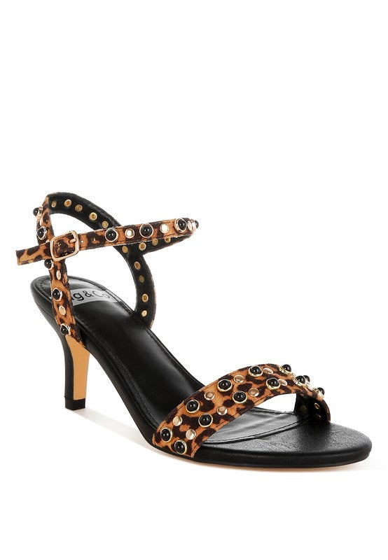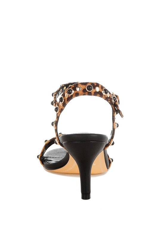 The leopard sandals have a ravishing look with the elevated detail of studs and pearl embellishment. The pin buckle strap ensures a snug fit while the plush cushion insoles cut strain. A glamorous style, sure to drop some jaws, pair the heels with a gorgeous cocktail dress for a chic and alluring ensemble.
