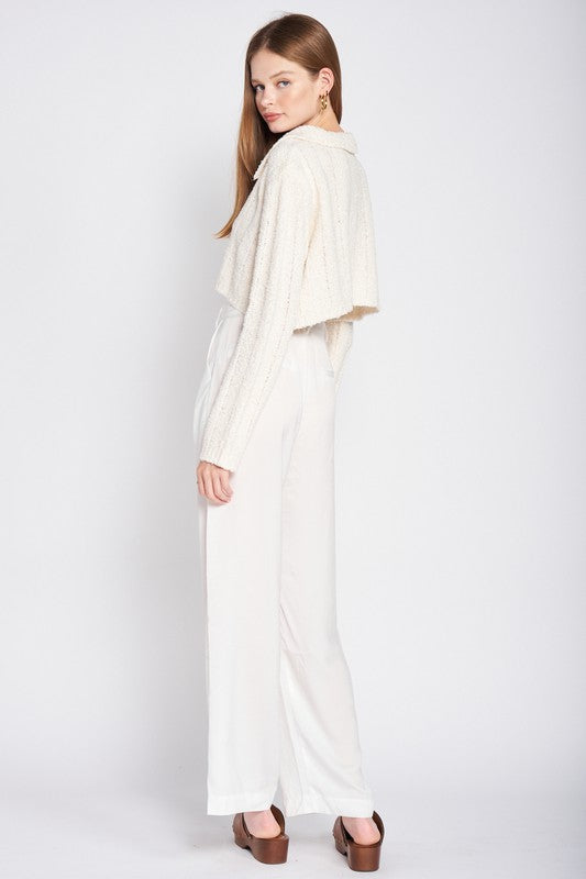 LONG SLEEVE COLLARED CROP TOP