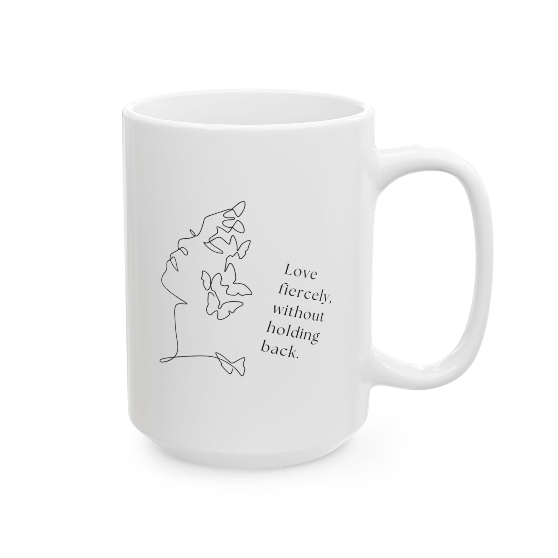 Love fiercely without holding back - Inspirational Quote Ceramic Mug | Coffee Tea Cup | Motivational Gift | Home Office Decor | Personalized Drinkware