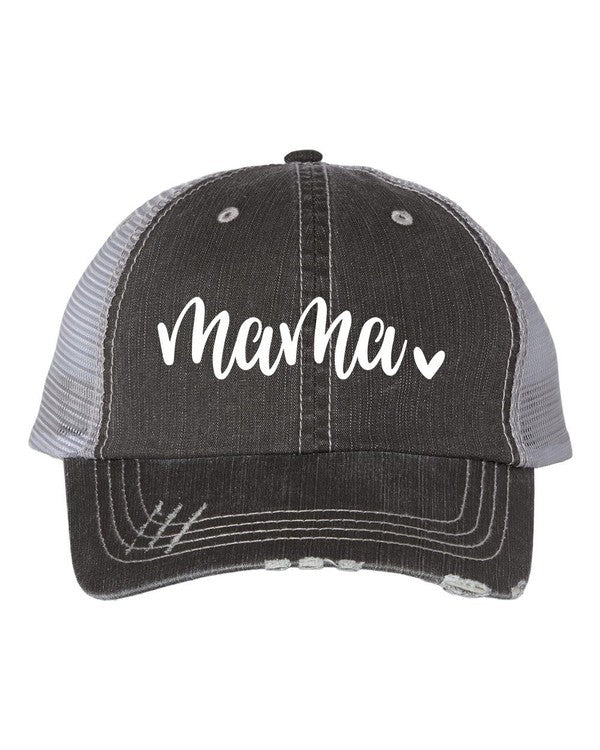 Mama with Heart Embroidered Hat with mesh back and velcro closing.