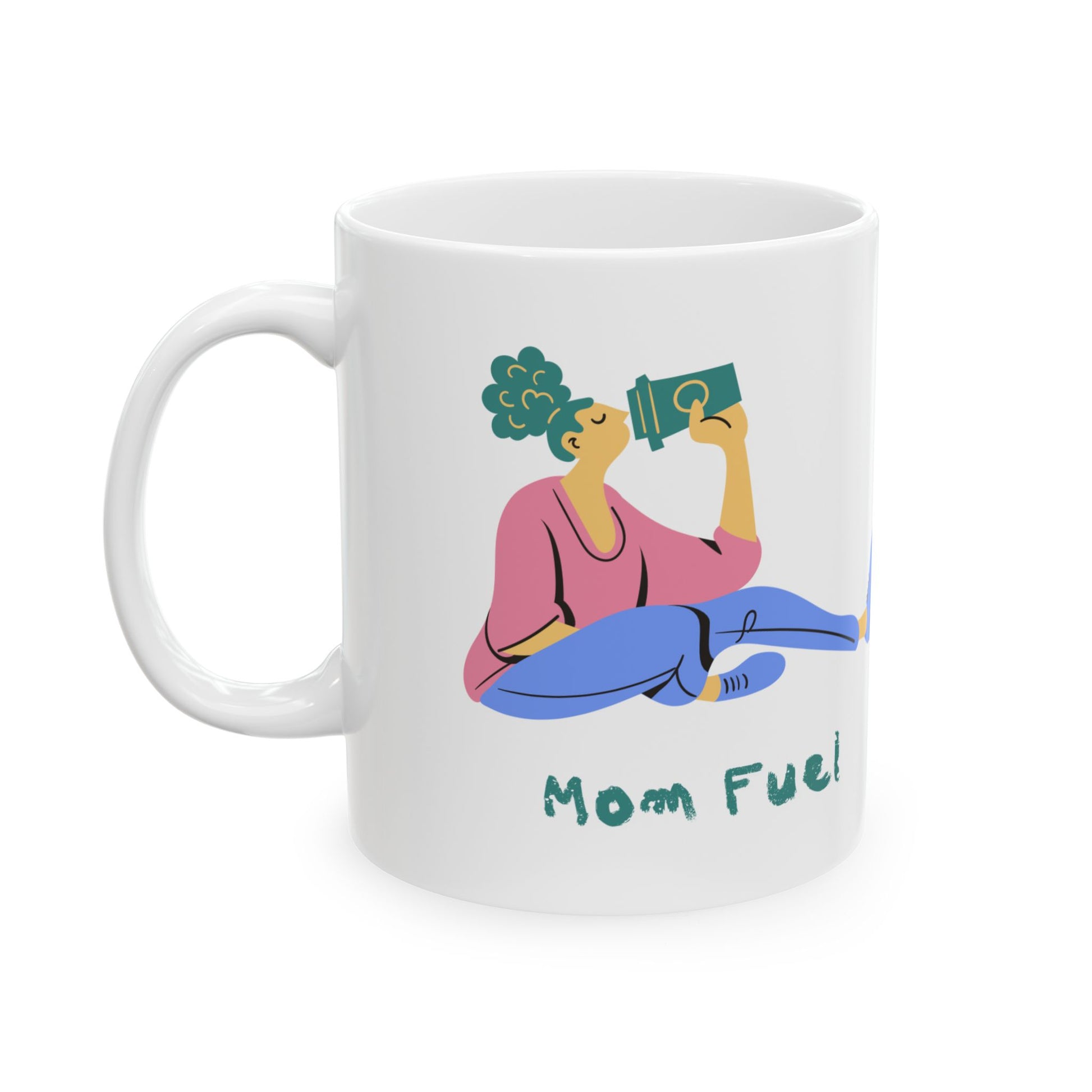 MOM FUEL Coffee Lover's Ceramic Mug, Relaxation Gift, Fuel Your Day, Customizable Drinkware, Fun Kitchen Decor, Tea Time Essential
