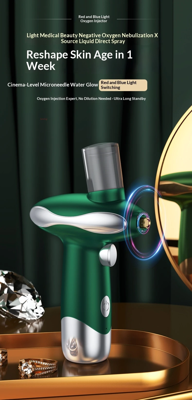 - All-in-one facial care – Oxygen spray, red light, blue light, and nano mist functions in a single compact device, so you can enjoy a complete skincare routine without multiple machines.