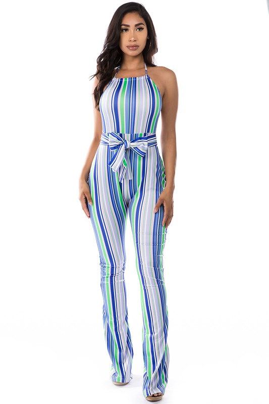 Sexy jumpsuit Halter neckline with back strip, open back long pant .
