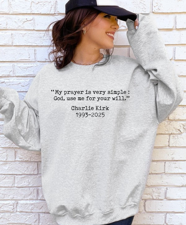 \"My Prayer is Very Simple: God Use Me For Your Will\" Charlie Kirk Graphic Crewneck Sweatshirt