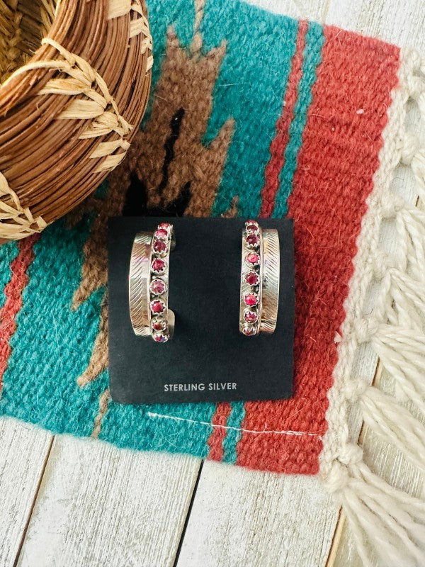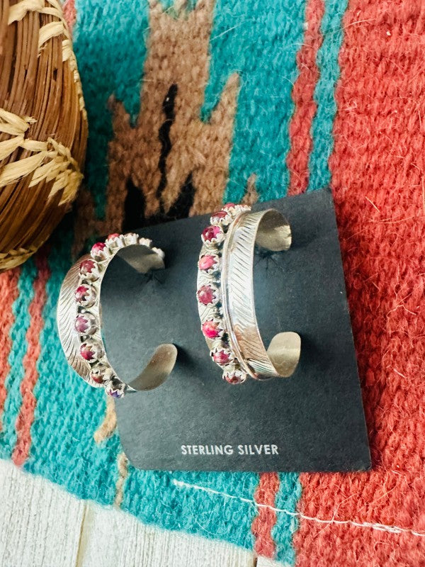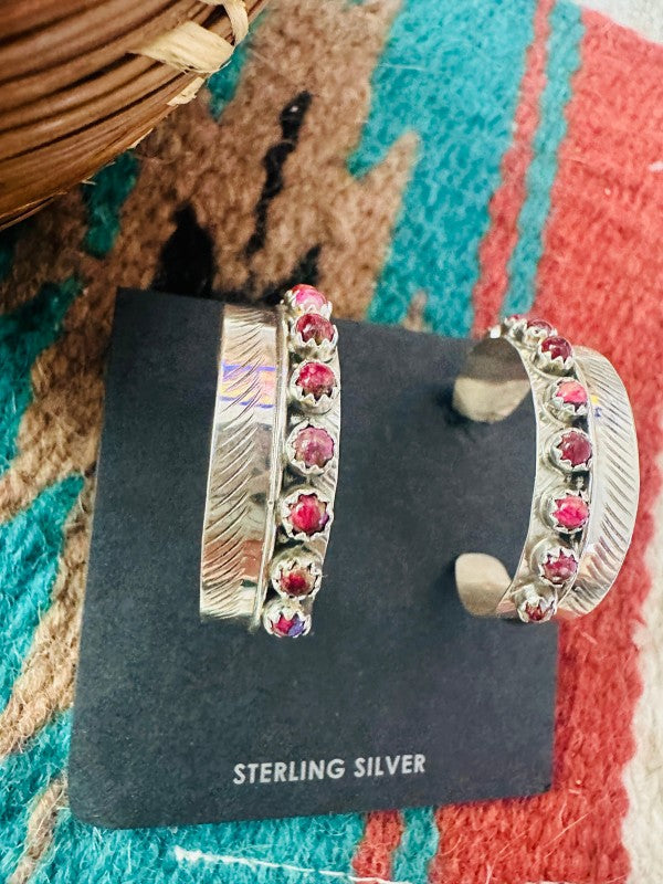 Navajo Purple Spiny & Sterling Silver Hoop Earring