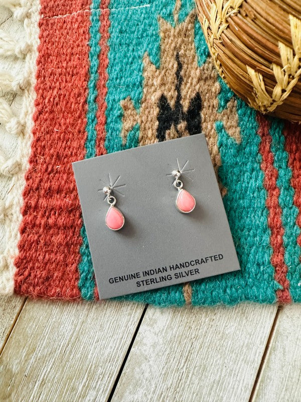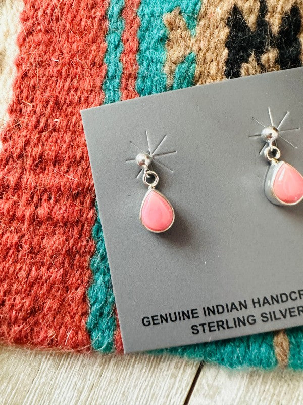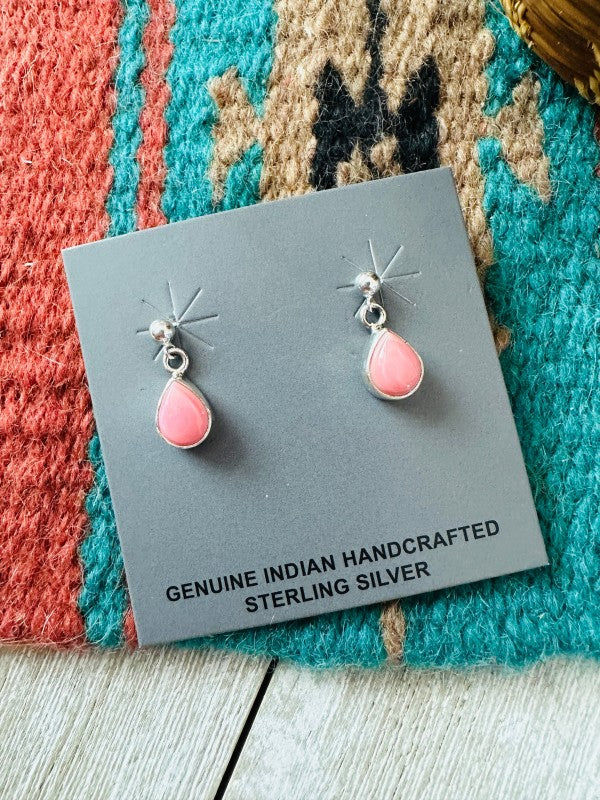 Navajo Queen Pink Conch & Sterling Silver Dangle Earrings