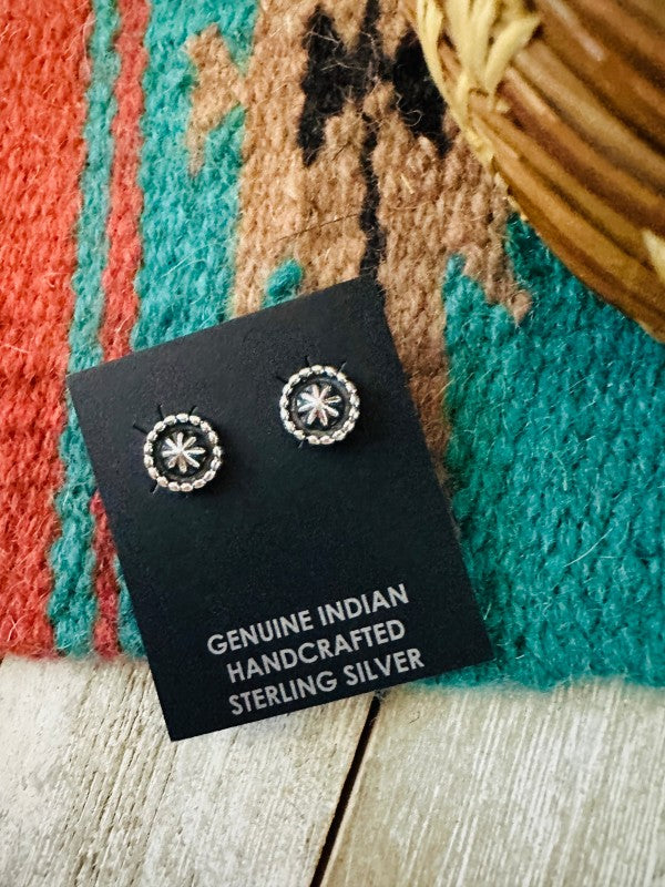 Beautiful Navajo Sterling Silver Concho Stud Earrings. These measure just over 1/4 of an inch across. Perfect for any collection!