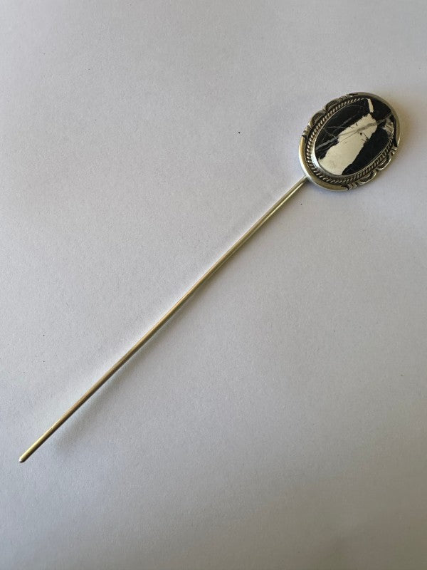 Navajo White Buffalo & Sterling Silver Hair Pin