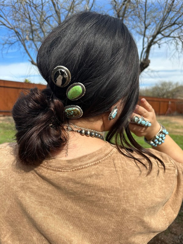 Beautiful Navajo Sterling Silver & White Buffalo Hair Pin. Measures 7 inches long and 1 1/4 inches wide. Such a gorgeous stone!