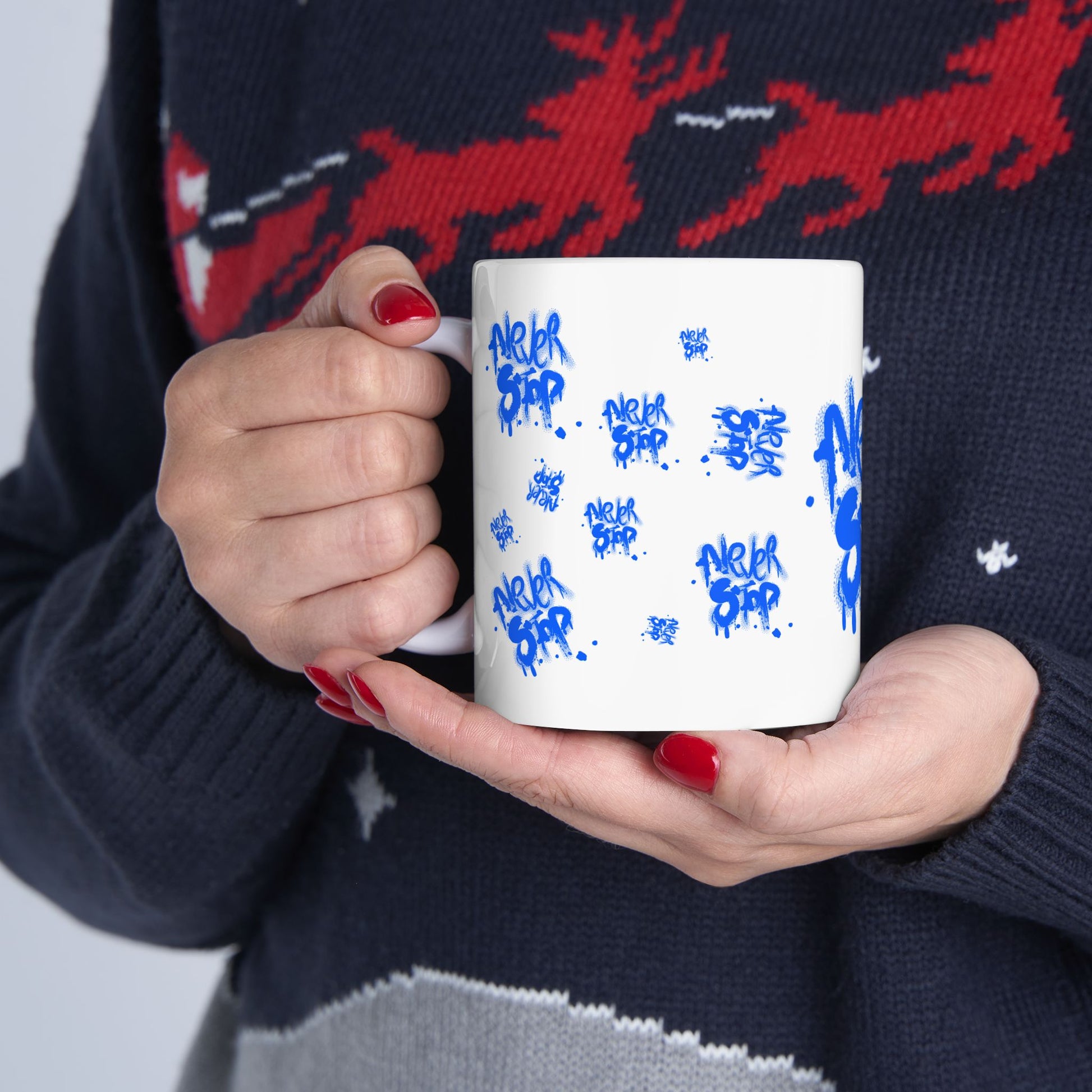 NEVER STOP - Inspirational Graffiti Ceramic Mug - Never Stop Coffee Tea Cup, Motivational Gift, Office Decor, Urban Style Mug