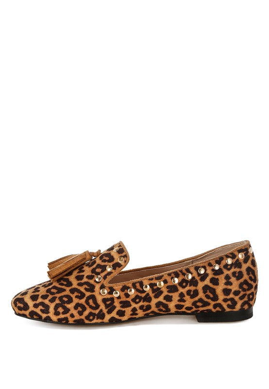 The leopard print loafers are made with premium quality real soft leather which is sustainable and gives a luxurious experience. The comfortable cushion insoles cut strain. The studs and tassels detail elevate the visual aesthetic of the loafers.